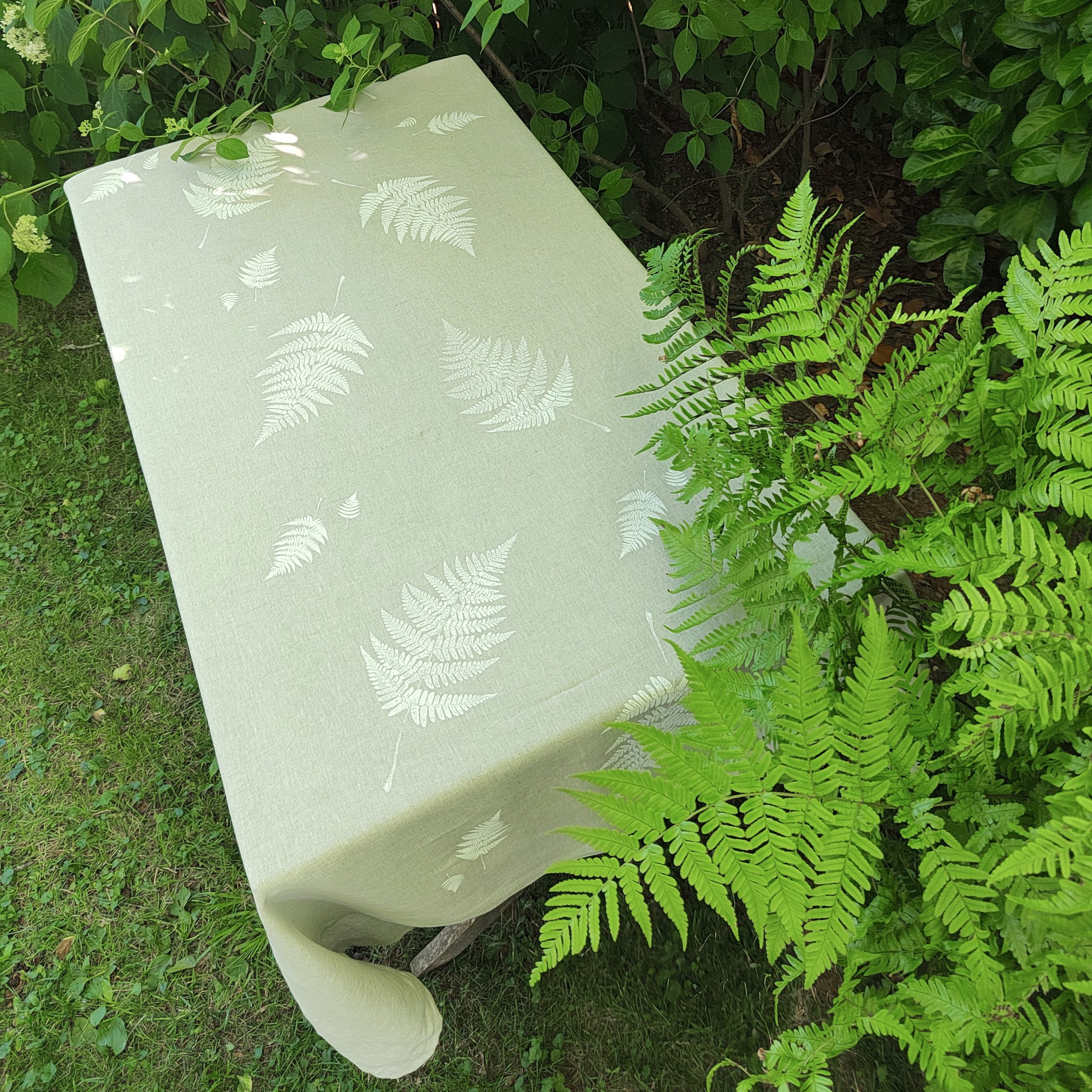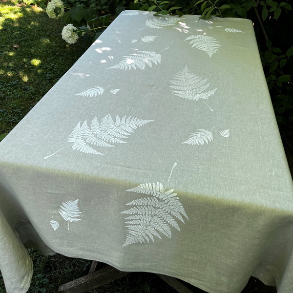 NAMIZNI PRT. ROČNO POTISKAN Z IZBRANIM VZORCEM BELE PRAPROTI. 100% NATUR LAN.
