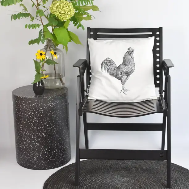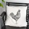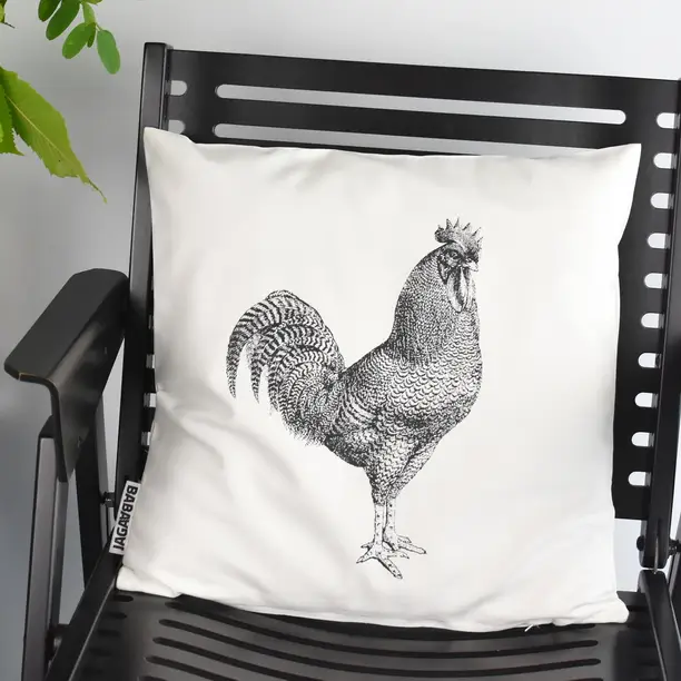 PREVLEKA ZA OKRASNO BLAZINO V BELI BARVI. 100% BIO BOMBAŽ. ROČNO POTISKAN ČRN PETELIN.