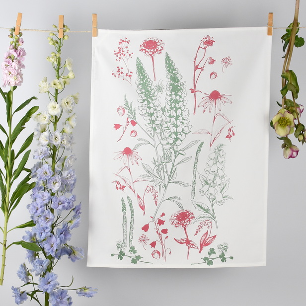 Na hišni tekstil smo natisnili grafični herbarij slovenskega ohišnega vrta, v katerem se žlahtnost vrta in iskrenost narave zlijeta v enoten, cvetoč preplet. Prepletli smo značilne vonje in oblike tipičnega vrta. V linijah vzorca rastejo šparglji, simbol potrpežljivosti in prvih pomladnih poganjkov, ob njih pa se rdečijo jagode – majhni, sladki utrinki poletja, ki nas spominjajo na otroško brezskrbnost.