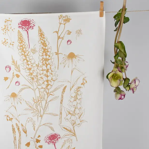 KUHINJSKA KRPA. ROČNO POTISKANA Z MOTIVOM GARTELJC.