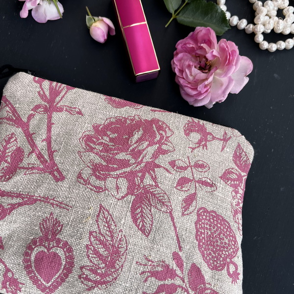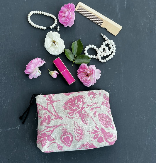 KOZMETIČNA TORBICA. 100% LAN. ROČNI SITOTISK Z IZBRANIM VZORCEM.