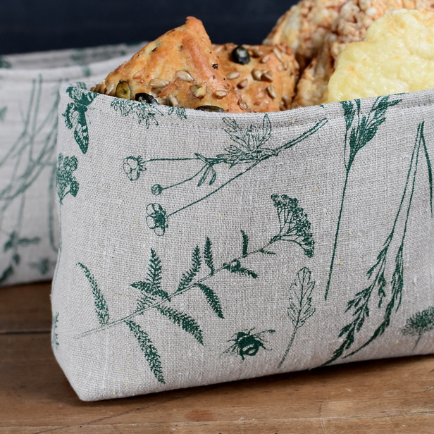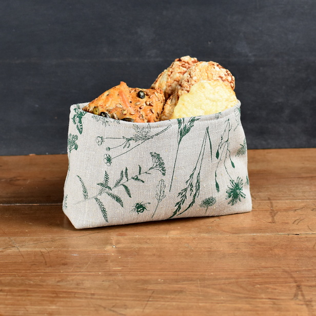 KOŠARICA ZA KRUH. ROČNO TISKANA Z IZBRANIM JAGABABA VZORCEM. 100% LAN.