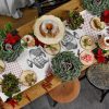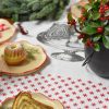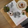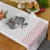 NAMIZNI TEKAČ V BELI BARVI, ROČNO POTISKAN Z IZBRANIM VZORCEM POTICE IN RDEČIMI ZVEZDICAMI. 100% BIO BOMBAŽ.