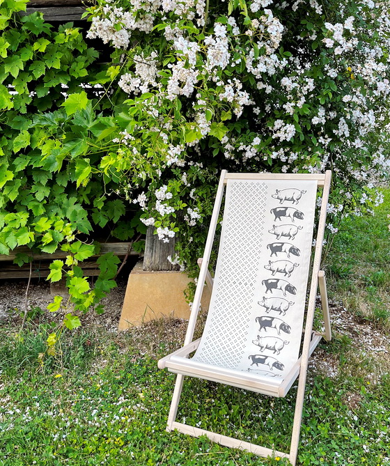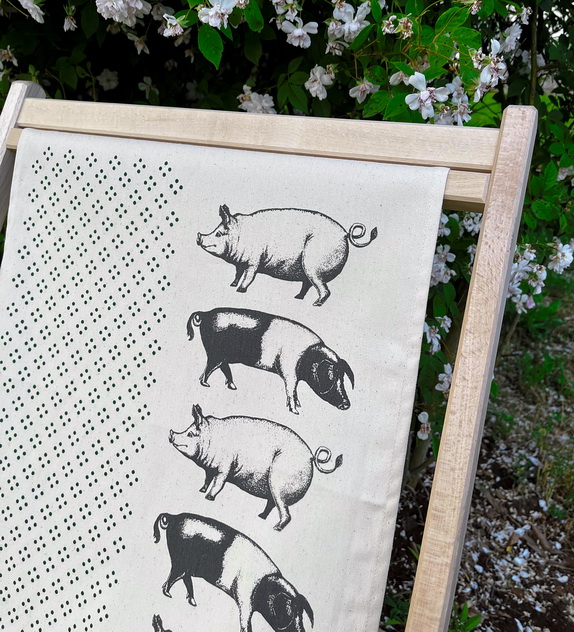 Krškopoljski prašič je edina ohranjena slovenska avtohtona pasma. Na Dolenjskem mu radi pravijo kar kralj živali – pujs. Nekoč je bil del vsake domačije, danes pa ga z našim motivom s ponosom prinašamo na ležalnik, ki združuje tradicijo in udobje.