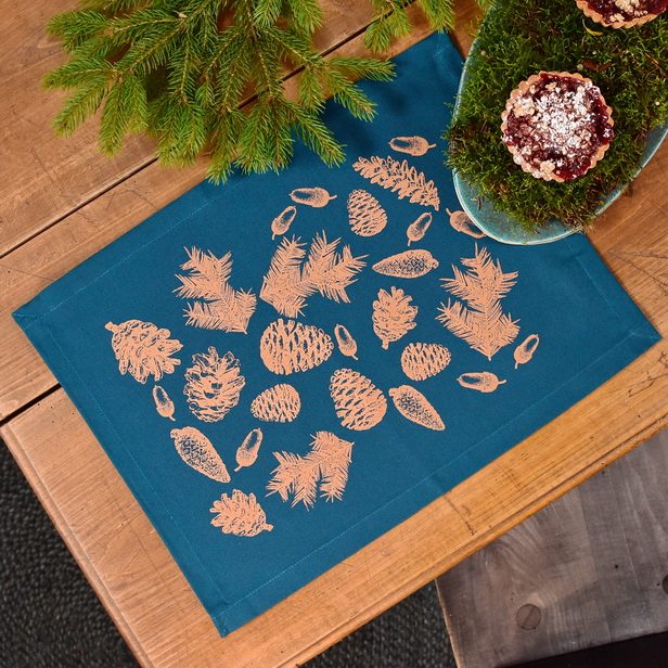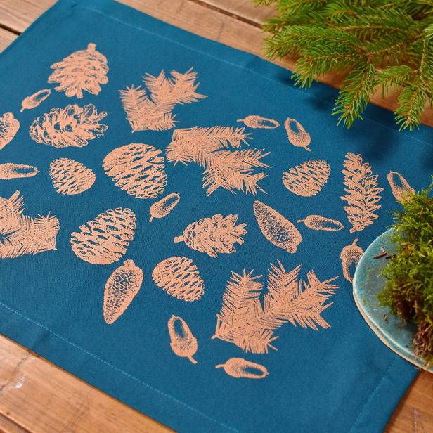 2 POGRINJKA V SETU. 100% BIO BOMBAŽ, PETROLEJ BARVE. ROČNO POTISKAN Z IZBRANIM VZORCEM.