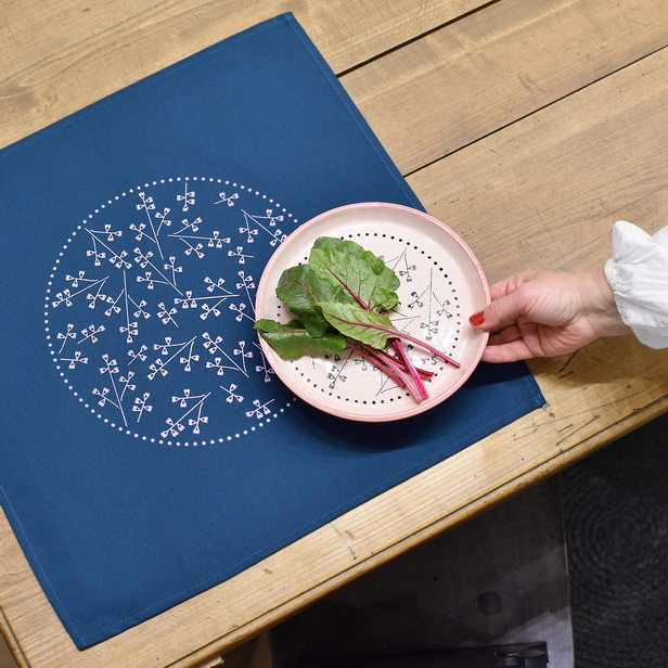 Petrolej prtiček, ročno potiskan z motivom garteljc v roza barvi.