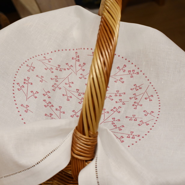 Prtič je velik 60×60 cm in je primeren za na mizo ali pa večjo velikonočno košaro.
