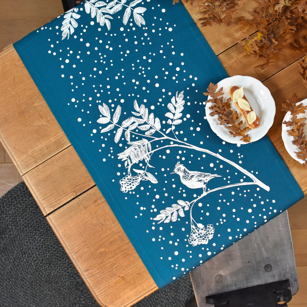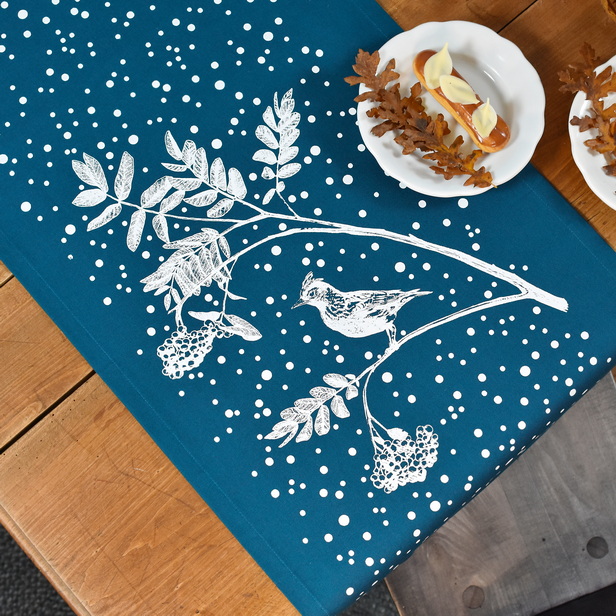 Vnesite praznični čar v svoj dom z elegantnim božičnim namiznim tekačem, potiskanim s čudovitim motivom snežene jerebike in drobnega škrjanca. Nežen zimski dizajn v toplih prazničnih tonih bo ustvaril prijetno, domačno vzdušje in čudovito dopolnil vašo božično mizo.